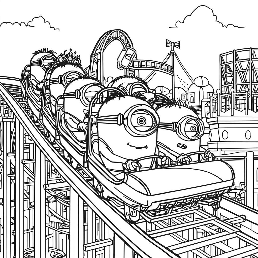 Em um dia ensolarado, os Minions decidiram visitar o parque de diversões mais divertido da cidade. Eles estavam tão animados para experimentar todas as atrações! Enquanto um grupo se aventurava nas montanhas-russas, gritando de emoção, outro se divertia jogando em um dos muitos estandes de jogos, tentando ganhar prêmios. Kevin, Stuart e Bob se revezavam nas atrações, rindo e fazendo travessuras pelo caminho. No intervalo, eles se deliciavam com algodão doce e pipoca, aproveitando cada momento da aventura. O dia estava repleto de risos e diversão, e os Minions não podiam estar mais felizes em criar memórias juntos.