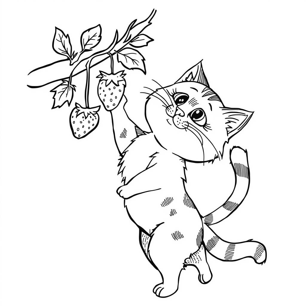 Em um lindo pomar, um gato curioso chamado Tico se deparou com um morango suculento pendurado em um galho baixo. Com seus olhos brilhando de desejo, Tico começou a saltar e a se esticar, tentando alcançar a deliciosa fruta vermelha. Cada tentativa era uma nova aventura, com o gato se equilibrando de maneira engraçada e fazendo acrobacias divertidas. Os pássaros ao redor observavam, cantando e rindo da cena cativante. Finalmente, após muitas tentativas, Tico conseguiu agarrar o morango e, com um sorriso satisfeito, decidiu que aquele sabor doce valia cada esforço. E assim, Tico aprendeu que a persistência traz recompensas, e o pomar se tornou seu lugar favorito.