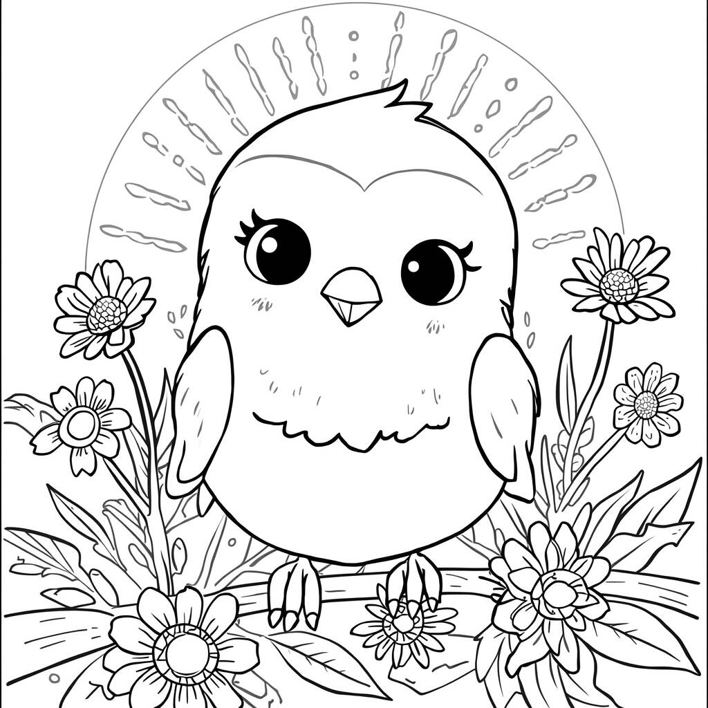 Era uma vez um adorável pássaro kawaii chamado Pipo, que vivia em uma árvore florida em um bosque ensolarado. Com seus grandes olhos brilhantes e um sorriso radiante, Pipo encantava todos os que passavam por ali. Todos os dias, ele cantava canções alegres que faziam as flores dançarem e os outros animais sorrirem. Um dia, ao voar para explorar novos lugares, Pipo encontrou um grupo de pássaros tristes, que haviam perdido suas cores. Com seu coração generoso, ele decidiu ajudá-los, espalhando alegria e pintando suas penas com as cores mais vibrantes do arco-íris. Juntos, eles formaram um lindo coral que encantou o bosque inteiro!