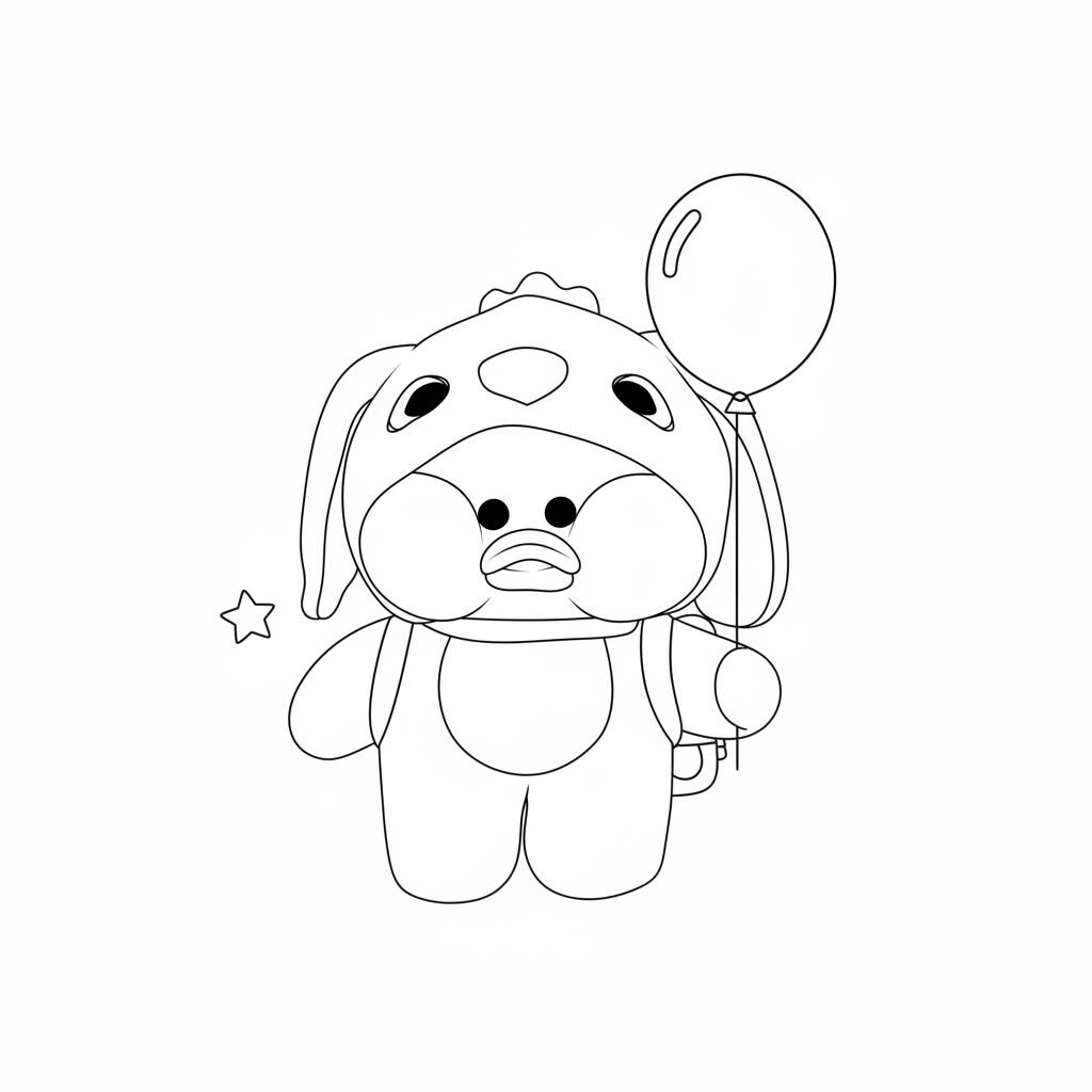 Uma adorável página de pato de papel segurando um balão, perfeita para imprimir e se divertir!