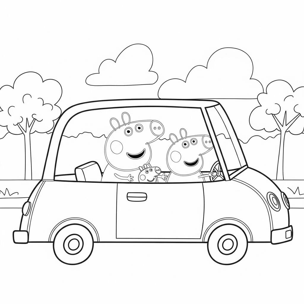 Peppa Pig e sua família decidiram fazer uma viagem de carro para o campo. Com o sol brilhando e a música alegre tocando, Peppa estava muito animada ao volante, enquanto George, seu irmão, olhava pela janela, maravilhado com as paisagens. Mamma Pig e Daddy Pig estavam atrás, conversando e rindo. No caminho, eles encontraram um lindo lago onde pararam para fazer um piquenique. Peppa e George brincaram de correr e pular, enquanto os pais preparavam deliciosos sanduíches. Foi um dia repleto de diversão e risadas, e ao final da viagem, todos concordaram que a aventura de carro foi inesquecível!