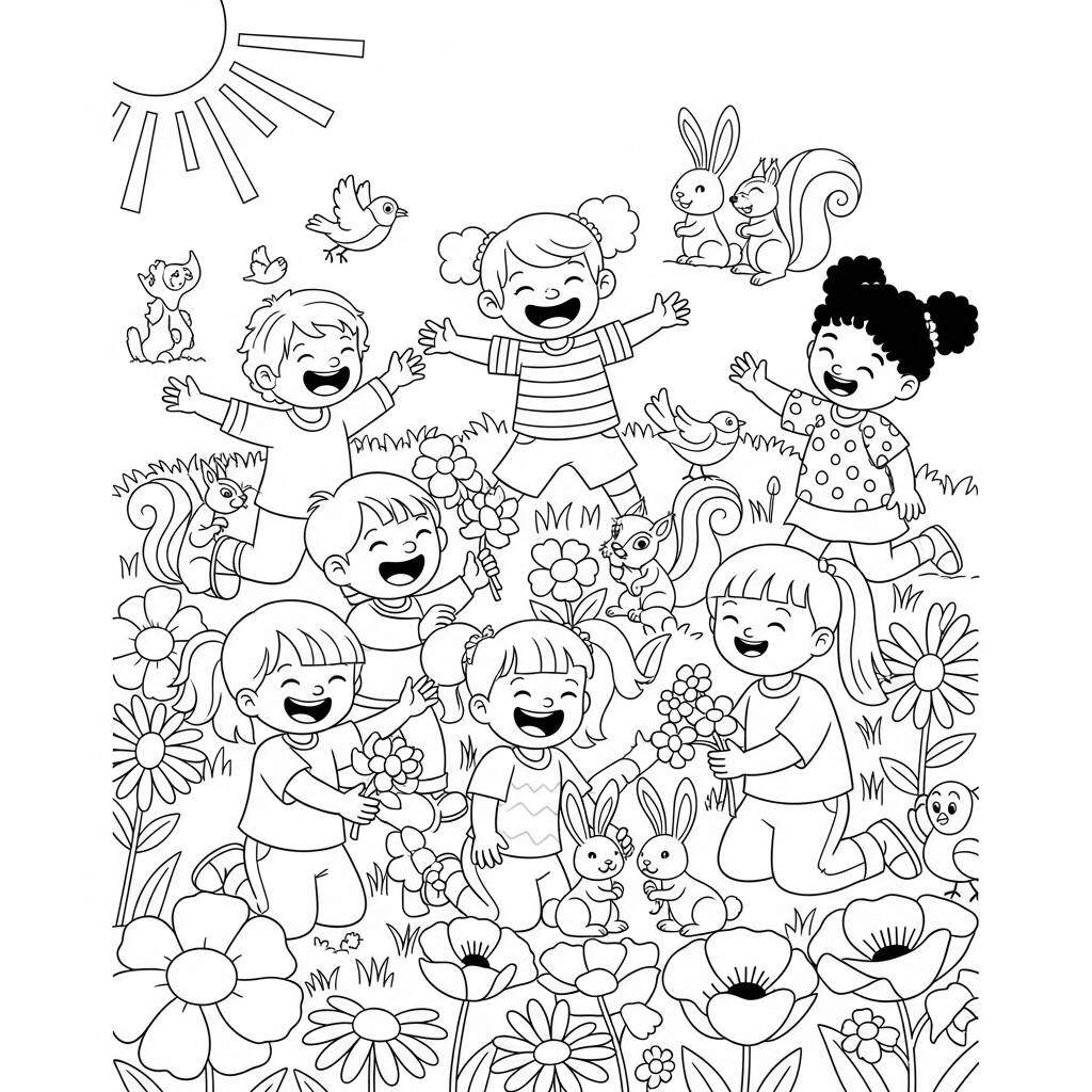 Na linda estação da primavera, um grupo de crianças decidiu aproveitar o dia ensolarado em um campo repleto de flores coloridas. Com sorrisos no rosto, elas correram atrás de borboletas e brincaram com os animais que encontraram pelo caminho. Um coelhinho branco pulava alegremente entre as flores, enquanto um cachorrinho corria atrás de uma bolinha lançada por um dos meninos. As risadas ecoavam pelo ar, e a felicidade era contagiante. As crianças, unidas pela alegria da primavera, aprenderam a importância de cuidar da natureza e dos amigos, criando memórias que durariam para sempre em seus corações.