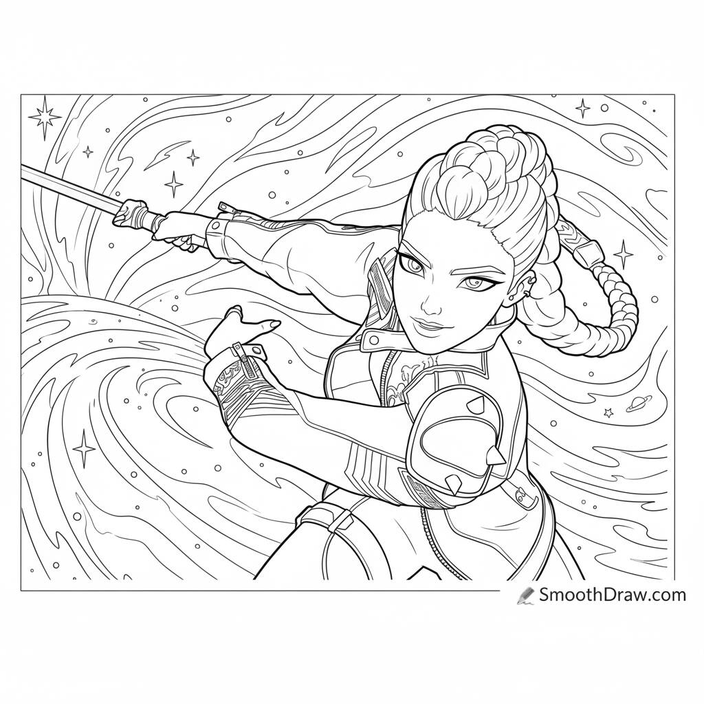 Uma ilustração estilosa de Rumi em uma cena de aventura, perfeita para os fãs do tema.
