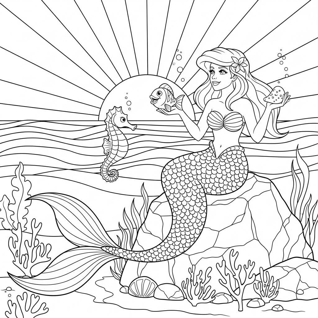 Em um reino mágico sob as ondas, vivia uma sereia chamada Marina, que tinha dois adoráveis animais de estimação: um peixe colorido chamado Bolha e um cavalo-marinho chamado Nino. Todos os dias, eles exploravam os recifes de corais e dançavam com as correntes do mar. Ao entardecer, Marina costumava se sentar em uma rocha, observando o sol se pôr, enquanto Bolha e Nino brincavam ao seu redor. A amizade deles era tão forte que, mesmo nas tempestades, eles sempre se uniam para enfrentar os desafios do oceano. Juntos, eles viviam aventuras incríveis, celebrando a beleza da vida marinha e a alegria da amizade.