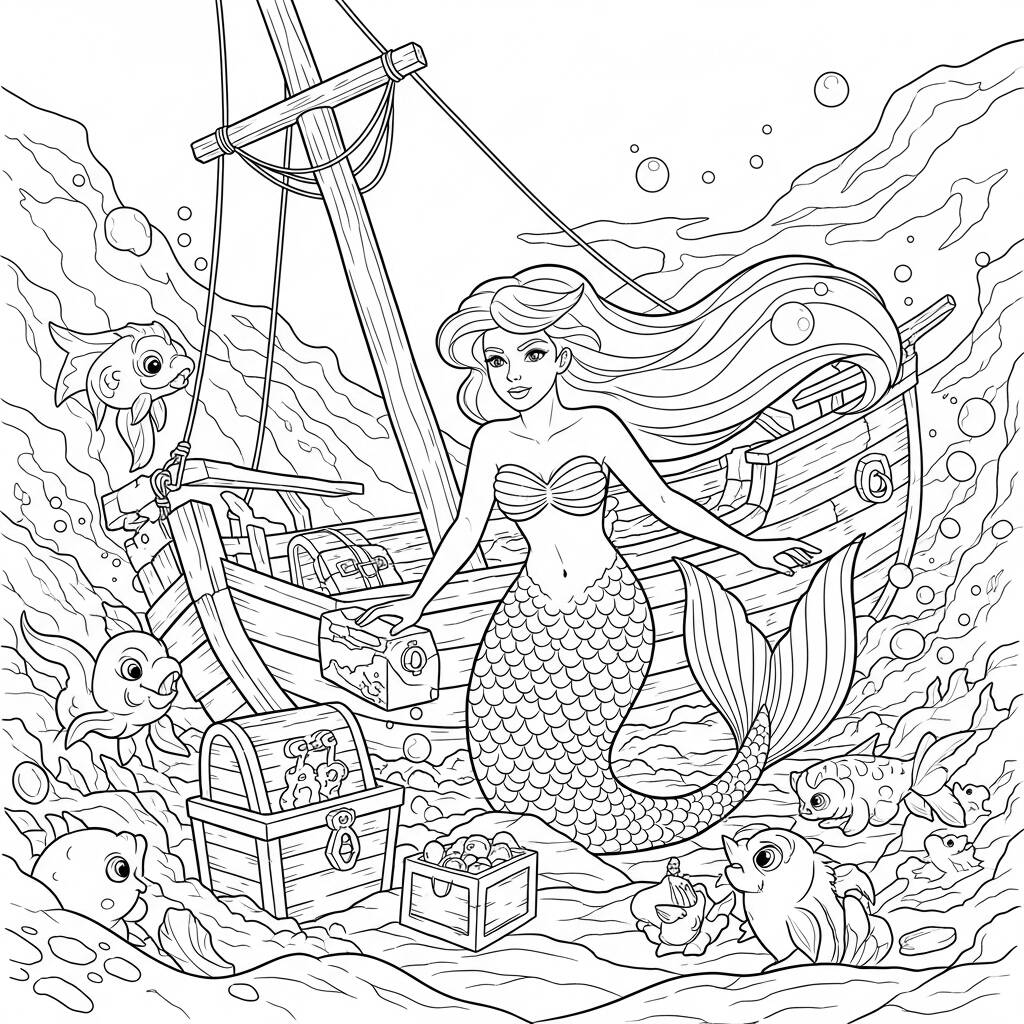 Numa manhã ensolarada no fundo do oceano, a sereia Marina decidiu explorar um antigo navio naufragado que já havia ouvido falar nas histórias de sua avó. Com sua cauda brilhante e cabelos flutuantes, ela nadou em direção ao misterioso barco, cercada por criaturas marinhas curiosas e coloridas. Ao entrar no navio, Marina encontrou tesouros reluzentes e artefatos esquecidos, mas também teve que enfrentar desafios inesperados, como um polvo gigante que guardava os segredos do local. Com coragem e astúcia, a sereia não só descobriu riquezas, mas também fez novos amigos entre os habitantes do mar, aprendendo que a verdadeira aventura está nas experiências compartilhadas.
