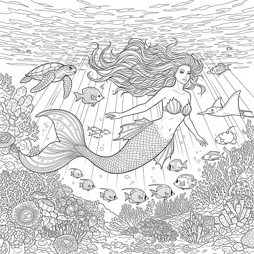 Em um reino subaquático repleto de cores vibrantes e criaturas fascinantes, uma sereia chamada Aria nadava graciosamente entre os recifes de corais. Sua cauda, adornada com detalhes delicados, brilhava à luz filtrada do sol que penetrava as águas cristalinas. Aria era conhecida por sua beleza singular e sua habilidade de se comunicar com os habitantes do mar. Um dia, enquanto explorava uma caverna misteriosa, ela encontrou um antigo artefato que poderia unir os mundos humano e aquático. Determinada a proteger seu lar e manter o equilíbrio, Aria embarcou em uma jornada épica, cheia de desafios e descobertas, para entender o verdadeiro significado de sua herança e o poder que possuía.