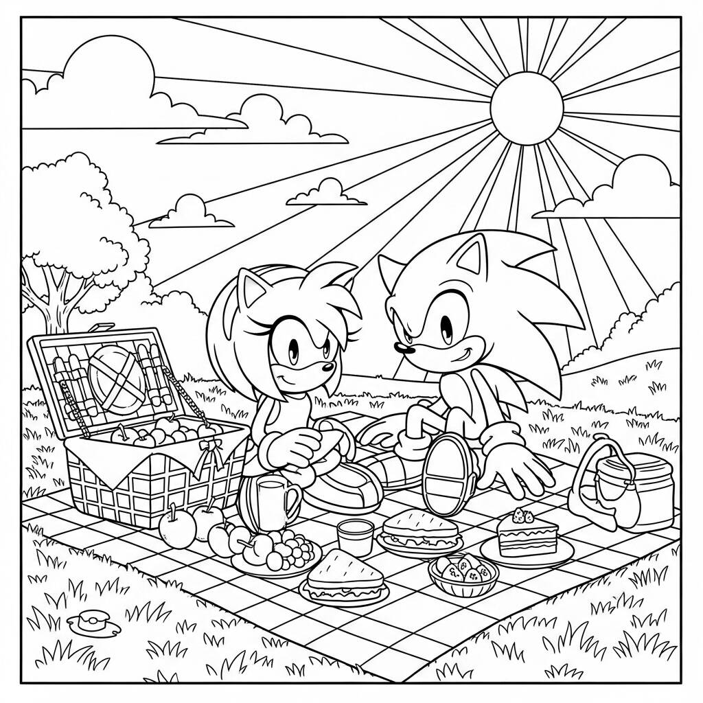 Em um dia ensolarado, Sonic e Amy decidiram fazer um piquenique em um lindo parque. Eles espalharam uma toalha xadrez sobre a grama verde e prepararam uma deliciosa seleção de sanduíches, frutas frescas e sucos. Enquanto saboreavam as iguarias, Amy olhou nos olhos de Sonic e disse: “Nada como um dia tranquilo para relaxar e aproveitar a companhia um do outro.” Sonic sorriu, fazendo uma piada sobre como poderia correr até a loja para pegar mais comida, mas preferiu ficar ali, desfrutando do momento. O som dos pássaros e o riso dos dois tornaram aquele dia inesquecível.