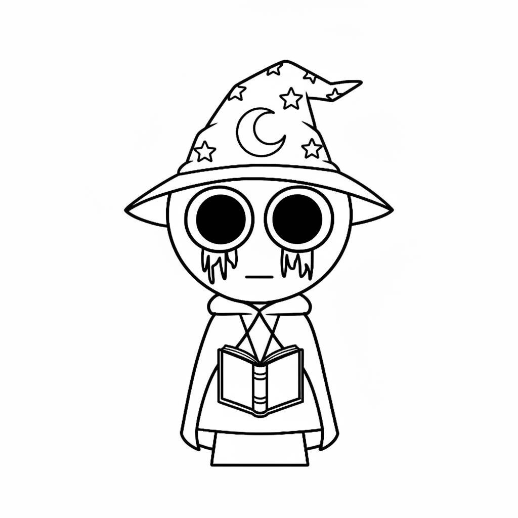 Uma divertida ilustração de Sprunki com um chapéu de mago, perfeita para estimular a criatividade.