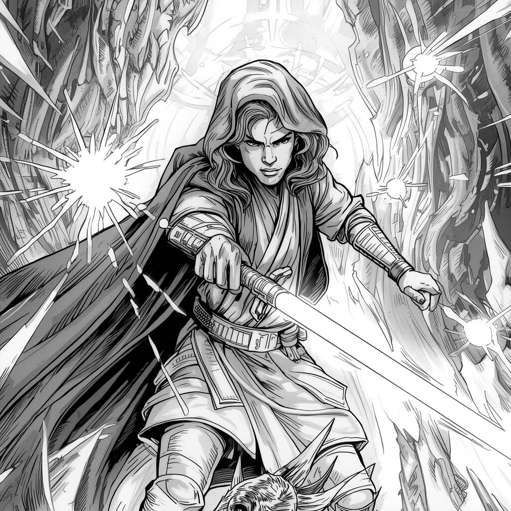 No distante planeta de Tatooine, um jovem Jedi chamado Kael descobre que possui uma conexão poderosa com a Força. Ao treinar sob a orientação de um mestre sábio, ele aprende a canalizar essa energia mística, que brilha ao seu redor como um halo luminoso. Durante uma batalha épica contra um lord Sith, Kael utiliza suas habilidades para proteger seu povo e restaurar a paz na galáxia. Com um golpe definitivo, ele libera uma onda de energia que desarma seu inimigo, provando que a luz sempre prevalece sobre as trevas. A saga de Kael se torna uma lenda, inspirando gerações futuras a acreditar na força do bem.