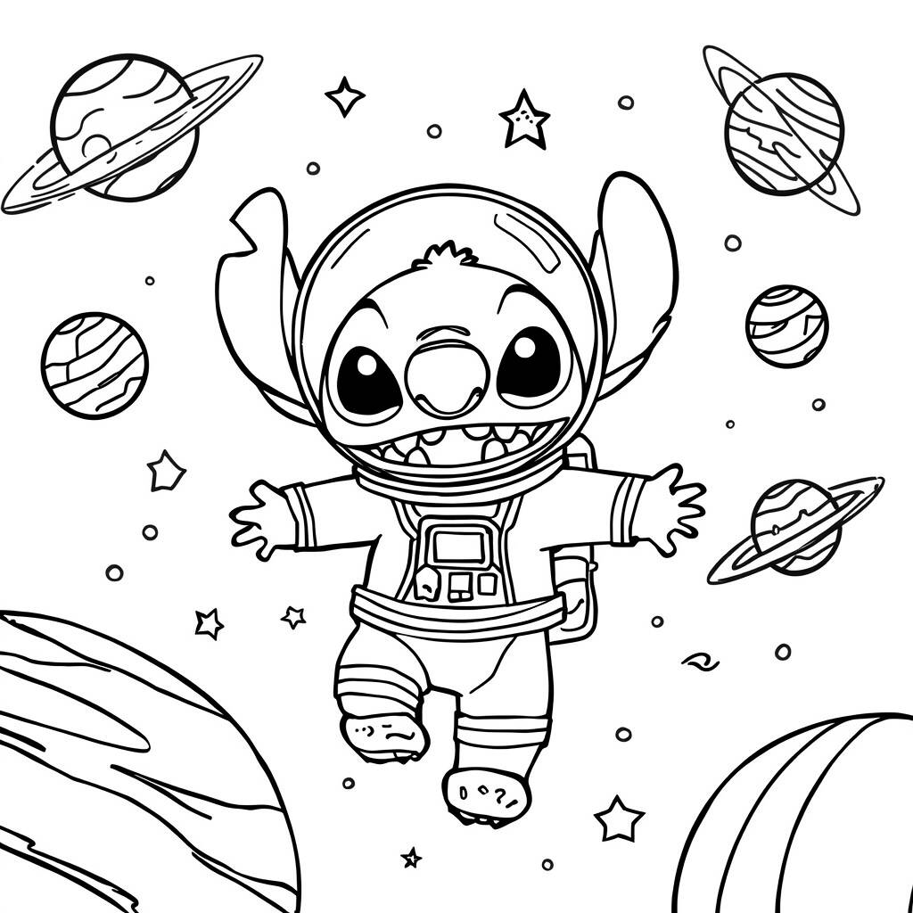 Em uma galáxia distante, Stitch, o adorável experimento alienígena, decidiu explorar os mistérios do espaço. Vestido como um astronauta, ele flutua entre planetas coloridos e estrelas brilhantes, acompanhado de sua amiga Lilo, que está sempre ao seu lado em suas aventuras. Juntos, eles encontram um planeta habitado por criaturas curiosas que precisam de ajuda para salvar suas flores mágicas, que estão desaparecendo. Com sua coragem e inteligência, Stitch usa suas habilidades únicas para enfrentar desafios e aprender sobre a amizade e a importância de proteger o universo. Assim, a dupla embarca em uma jornada emocionante, cheia de risadas e descobertas!