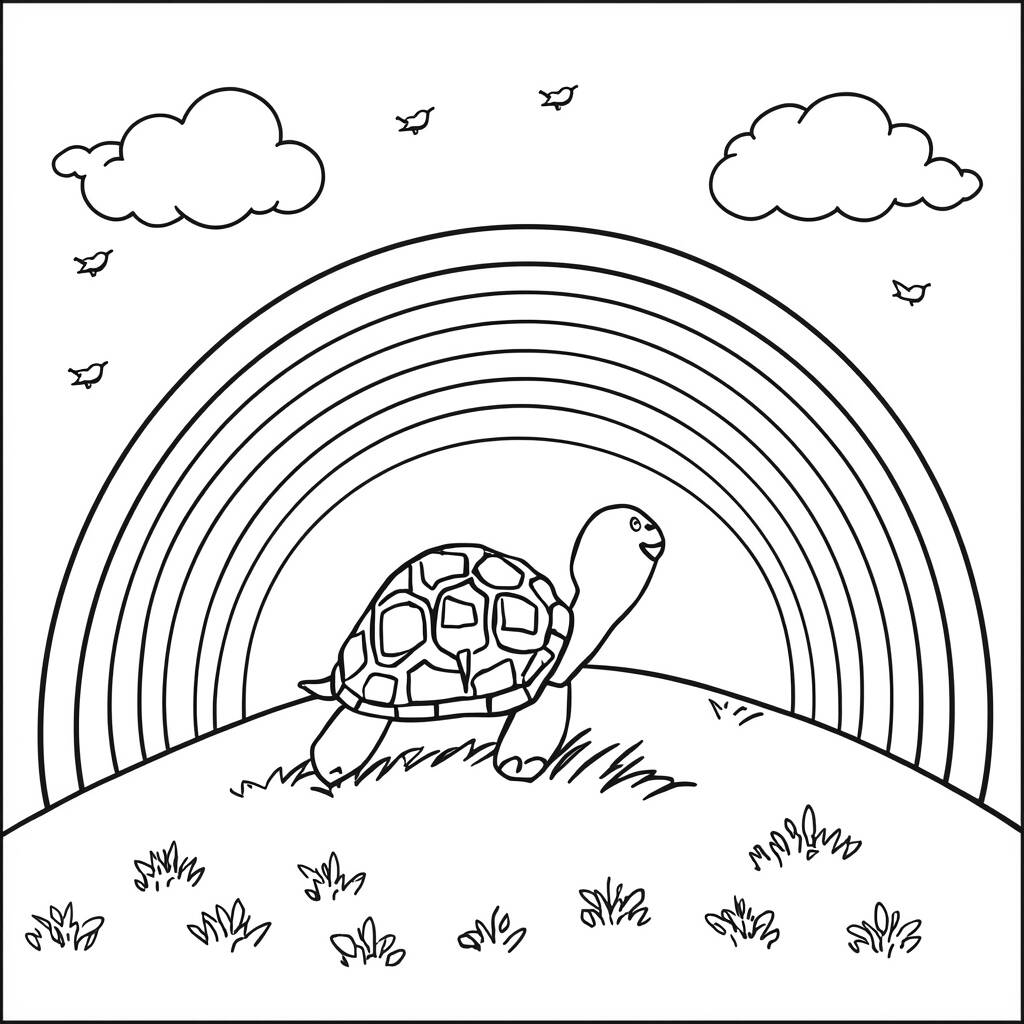 Em um vale tranquilo, uma tartaruga chamada Tina sonhava em ver o arco-íris mais bonito do mundo. Todos os dias, ela subia a colina mais alta, observando as nuvens que dançavam no céu. Um dia, após uma chuva leve, Tina decidiu que era hora de explorar. Com determinação, ela subiu lentamente, sentindo a brisa fresca em seu casco. Quando finalmente chegou ao topo, ficou maravilhada ao ver um arco-íris radiante, colorindo o horizonte. Tina sorriu, pois sabia que a beleza do mundo estava ali, esperando por aqueles que tinham coragem de sonhar e explorar.