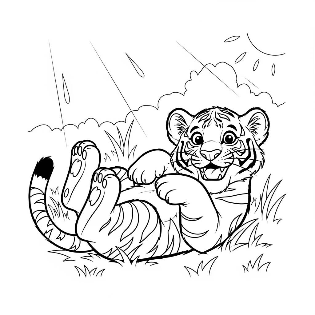 Em uma floresta iluminada pelo sol radiante, um filhote de tigre chamado Tigrinho se divertia brincando na grama verde e macia. Com seus grandes olhos curiosos e um sorriso travesso, ele rolava e se contorcia, aproveitando cada momento de sua infância despreocupada. O calor do sol acariciava seu pelo laranja, enquanto ele perseguia borboletas e se escondia entre as folhas. Os pássaros cantavam alegremente ao seu redor, e a natureza parecia celebrar sua felicidade. Tigrinho sabia que cada dia era uma nova aventura, cheia de risadas e descobertas, e ele estava determinado a aproveitar ao máximo sua vida selvagem.