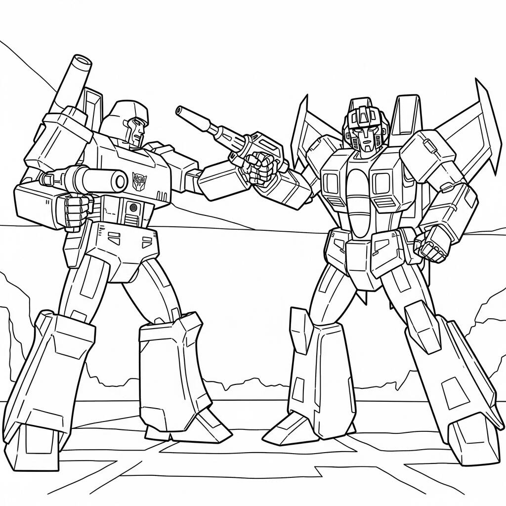 Megatron e Starscream estão em um confronto épico na batalha pelo controle de Cybertron. Enquanto Megatron, o temido líder dos Decepticons, busca dominar o universo com sua força implacável, Starscream, seu astuto segundo em comando, trama para derrubá-lo e assumir o trono. Em meio a explosões e raios de energia, os dois rivais se encaram, prontos para atacar. A tensão entre eles é palpável, e o destino de toda a galáxia está em jogo. Quem sairá vitorioso dessa disputa de poder? A luta entre lealdade e ambição promete redefinir o futuro dos Transformers.