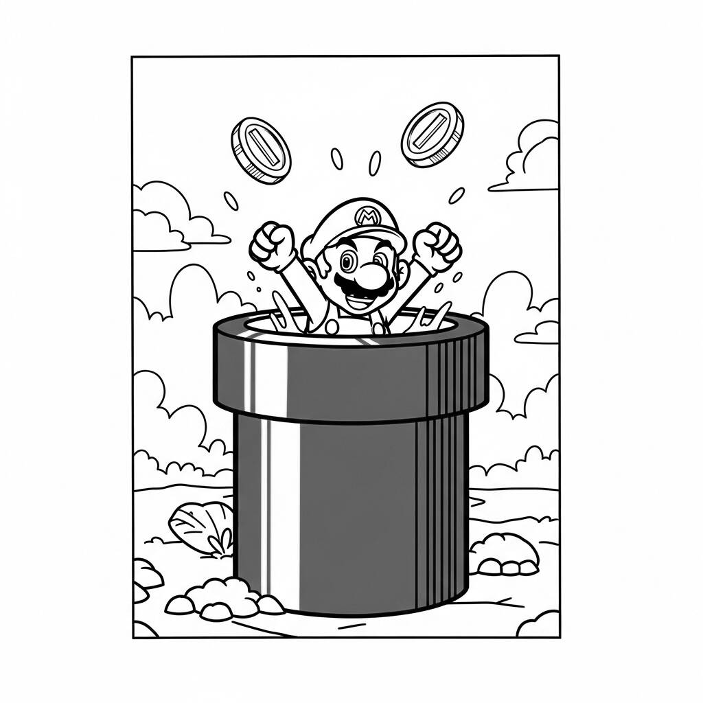 Em um dia ensolarado no Reino dos Cogumelos, Mario decidiu explorar um novo mundo que havia surgido misteriosamente. Ele avistou um tubo verde brilhante e, curioso, pulou dentro dele. Ao sair do outro lado, foi recebido por uma explosão de moedas douradas que flutuavam ao seu redor, enquanto criaturas encantadoras dançavam alegremente. Mario, com seu característico chapéu vermelho, começou a coletar as moedas, rindo e se divertindo como nunca. No entanto, ele logo percebeu que esse novo mundo estava cheio de desafios e segredos, e que sua aventura estava apenas começando. Com coragem e determinação, ele se preparou para enfrentar o que viesse pela frente!